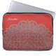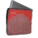 Elegante funda portátil con cremallera hecho en rojo con gráficos de una mandala de aspecto grabado en relieve. El texto del guión de personalizado está listo para personalizar para usted o como una gran idea de regalo.