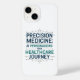 Diseño de tecnología médica futurista con el lema "MEDICINA DE PRECISIÓN: IA PERSONALIZANDO TU VIAJE DE SALUD" con elegantes acentos de circuito. Perfecto para los innovadores en tecnología de la salud, los profesionales de la IA y los futuristas médicos que modelan la atención personalizada.