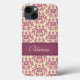 Un singular y elegante "Kangaroo Paws" sutil y el estuche de iphone con patrones de color adamascado estilo damasco en ciruela rosa dandy y un matiz amarillo limón mutado. Personaliza este elemento con tu nombre. Este ejemplo dice: Tanya. El "Kangaroo Paw" es una impactante planta nativa de Australia Occidental, este patrón se inspiró en la interesante naturaleza estructural de los "Kangaroo Paws". Muchas variedades de Kangaroo Paws se cultivan en jardines por toda Australia. Este patrón original fue diseñado por Sarah Trett.