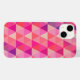 Patrón geométrico de moda en el estuche de teléfono. En este diseño se pueden ver colores como rosa, coral, magenta y violeta.