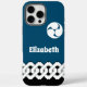 Este estuche de teléfono azul y negro está decorado con algunos elementos clásicos de diseños japoneses. La parte inferior incluye una cadena de yoshiwara blanca y un escudo mitsudomoe espiral que descansa cerca de la cámara. En el medio... ¡es tu propio nombre! Intenta teclearlo en la caja de arriba y mira el cambio de la imagen de previsualización.