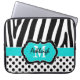 Esta moda y estampado de cebra azul turquesa, negro, blanco y azul turquesa de moda y manga de polka para portátil tiene cajas de texto para añadir su nombre y monograma. ****POR FAVOR envíame un correo electrónico si quieres un tamaño MÁS GRANDE, ya que seleccionarlo por tu cuenta causará que el diseño y los cuadros de texto se deslice. Si necesita ayuda para personalizar esto con su propia información, envíe un correo electrónico a niteowlstudio@gmail.com para obtener ayuda.