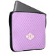 Tejido impreso efecto cuadrado tipo corrector en tonos rosa y púrpura con monograma blanco. Personalízala con tus iniciales. Actualmente se lee RD. Patrón y diseño de Sarah Trett.