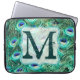 Bolsa de Funda de portátil de 15" personalizada con la piel de pájaro de pavo real Verde azulada de color turquesa de color victoriano