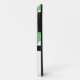 Funda de iPhone 5, elegante y agradable, diseñado en un patrón de puntos polka variados en verde y blanco, con un adorable pingüino negro redondeado y personalizado impreso con tu nombre o texto personalizado.