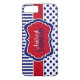 Modernos puntos de polka rojo, blanco y azul personalizados con rayas funda para iPhone 7.