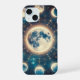 El diseño muestra una luna grande y brillante rodeada de lunas más pequeñas o fases lunares, colocada sobre un fondo de estrellas y líneas celestes.