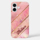 Elegante Purpurina de imitación rosa oro rosa color rosa rayado geométrico iPhone 16 Funda. Con bandas de oro abstractas y onduladas de rosa que recorren el funda, este diseño añade un toque lujoso a cualquier iPhone. Las líneas de flujo le dan un aspecto artístico pero refinado, perfecto para los amantes de un estilo refinado y de moda. Ya sea para día de San Valentín, Navidades o como regalo en general, es una gran idea de regalo para cualquier chica que ame las cosas modernas y brillantes. NOTA: Se trata de gráficos impresos planos, sin purpurinas, joyas ni piezas elevadas.