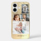 Funda iPhone 16 4 Fotos, Faux Brushed Gold Metalizado, Purpurina,