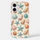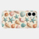 Las conchas de mar y las estrellas del mar en azul y azul, con un fondo de arena clara, crean la estuche perfecta para iPhone con temática playera. Ideal para los amantes de la playa y del océano.
