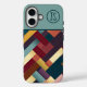 Funda iPhone 16 Acogedor patrón de tejido de tonos otoñales monogr