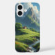Escape to a breathtaking mountain paradise! This serene phone case features a picturesque illustration of a classic Alpine landscape. Towering, snow-capped peaks stand majestically in the background, overlooking a lush, vibrant green hillside. A charming, rustic wooden cabin sits peacefully on the slope, with a winding dirt path leading toward it. In the foreground, a crystal-clear river flows over rocks, completing this idyllic scene of perfect natural tranquility and isolation.