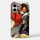 Ilustracion de moda vintage que muestra a un par de amantes a caballo.