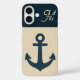 Funda iPhone 16 Ancla azul marino con costa monogramo beige