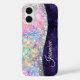 moda de bonito y elegante estuche para iPhone de iridiscente de unicornio giratorio para proteger tu equipo. Este estuche para iPhone está adornado con una falsa paleta de arcoiris holográfica purpurina. El diseño brillante brilla en tonos rosas, azules y verdes, creando una estética animada y jovial que resulta lúdica y moda. Es el regalo perfecto para un dulce cumpleaños de 16 años, boda, ducha de novia, aniversarios, duchas de bebé o fiestas de soltera, día de San Valentín, Navidades o como regalo en general. NOTA: Se trata de gráficos impresos planos, sin purpurinas reales, joyas o piezas elevadas