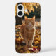 Un encantador gato jengibre que explora las hojas caídas del otoño, perfecto para diseños de estuches de teléfono cálidos y estacionales.
