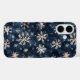 Funda iPhone 16 Azul oscuro simple con copos de nieve
