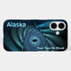 Una imagen fractal de tono azul que se asemeja a un grupo de ballenas en espiral bajo el hielo polar; tal vez ballenas beluga o minke que frecuentan los polos. El texto que dice "Alaska" también aparece en azul brillante y blanco. Personalizar agregando su propio texto adicional.