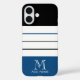 Funda iPhone 16 Bandas azules negras modernas con nombre de monogr