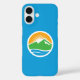 funda del iPhone 14 con un diseño con la bandera de Provo, Utah. Una bandera azul con el logo de la ciudad de Provo en el centro. El logo representa el lago Utah y los picos de montaña cercanos con el sol naciente al fondo