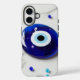 Funda iPhone 16 Blue Evil Eye Amulet on White Marble Surface