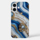 Funda iPhone 16 Blue Geode Gemstone with Gold Crystals – Luxury