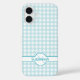Funda iPhone 16 Blue Gingham Check Monogramed Personalizado Funda-