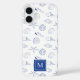 Funda iPhone 16 Blue White Hand Drawing Sea Shells Beach Summer