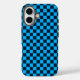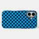 Blue and black checkerboard pattern with evenly spaced squares. The image conveys a sense of order and symmetry, with a vibrant color contrast.