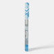 estuche de teléfono monogramado por personalizado con un patrón de chevron color agua boho en colores azul y blanco. Personalízalo con tu nombre monograma u otro texto. Utilice las herramientas de diseño para agregar la foto de su personalizado y editar los tipos de letra y los colores del texto para crear un diseño único.