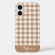 Funda iPhone 16 Boho Gingham Pattern Plaid Checkered Brown Name