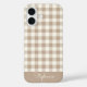 Funda iPhone 16 Boho Gingham Pattern Plaid Checkered Neutral Name