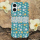 Funda iPhone 16 Bonito turquesa floral con encaje blanco Girona li