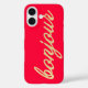 Funda iPhone 16 Bonjour en Gold Script Red French Hello