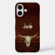 Funda iPhone 16 Bull Skull Brown Monograma Rústico País Occidental