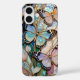 Elegant iPhone case featuring a stained glass style butterfly design with soft purple, blue, and pastel tones, accented by delicate gold details and subtle floral elements. The airy composition creates a graceful and feminine look.