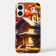 Impresionante estuche de teléfono anime con una acogedora cabaña en un denso bosque otoñal con hojas doradas y cálida luz solar. Perfecto para un paisaje de otoño pintoresco y tranquilo.