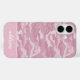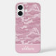 El estuche de teléfono de impresión de camo de Guay presenta un patrón de camuflaje en tonos rosas para que una chica tome la tendencia del camo. Personalizar con un nombre en la parte inferior en letras de caligrafía blanca.