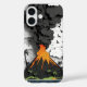 Funda iPhone 16 Cartoon Volcano Eruption & Palm Trees Phone Case