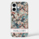 Funda iPhone 16 Cherry Blossoms Teal Sakura Print Monogrammed