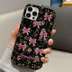 Funda iPhone 16 Chic black white toile pink coquette bows monogram