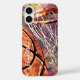 Funda fuerte del iPhone de básquetbol para chicas con composición de gráficos de baloncesto y aros que ha recibido acentos de niñita en tonos rosados púrpura y por supuesto naranja - personalizar con su nombre - por katz_d_zynes | También puede gustarle mi colección de regalos para chicas del equipo de baloncesto >> https://www.zazzle.com/collections/119901188031358626