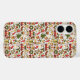 A fun iPhone case decorated with a lively Christmas doodle pattern featuring snowmen, bells, stockings, trees, gifts, candles, stars, mittens, and holiday drinks. A bright festive design that adds cheerful seasonal style to your phone.