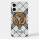 Funda iPhone 16 Clan MacFarlane Escudo sobre el tartán blanco y ne