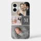 Funda iPhone 16 Collage de fotos Monograma Personalizado Gris Mod