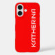 Funda iPhone 16 Color rojo sólido | Nombre blanco clásico