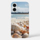 Dejen que su mente se desplace mientras piensan en la playa y recogen conchas marinas. Hay muchas conchas marinas en la arena a lo largo de la orilla. Agua azul cristalina y una hilera de árboles al otro lado del lago.