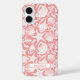 Customize this coral shell pattern iPhone 16 case with your your name in a trendy modern CAP font in coral on white. It's so modern and beachy!