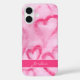 Este estuche de teléfono presenta una divertida pintura de acuarela abstracta con corazones rosados. Se personaliza con tu nombre en letras de guión. Artsy, chica y única.
