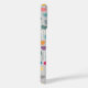 Diseño lúdico y minimalista de estuches de teléfono con diminutos corazones dispersos en tonos arcoiris pastel sobre un fondo gris claro. Perfecto regalo romántico con un sutil encanto colorido.